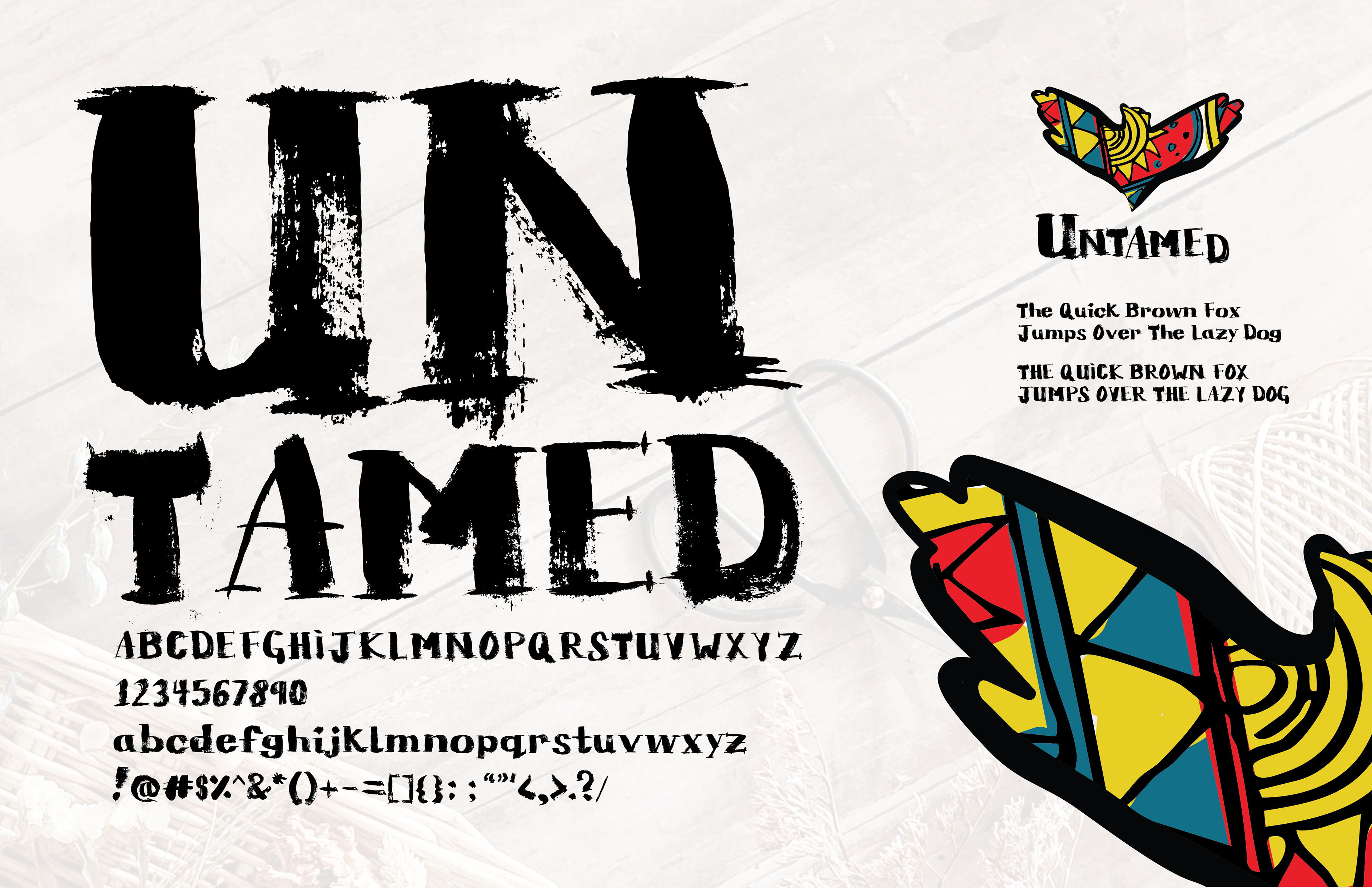 Untamed is a custom typeface created for my thesis project to reflect a hands on and experimental approach to nature based crafts. Each letterform was painted by hand, then digitized and refined using Adobe Illustrator, Photoshop, and Glyphs. The rough brush strokes and textured forms communicate energy and unpredictability. I designed it to feel expressive while remaining legible. This typeface supports the overall identity of the project and reinforces its focus on creativity and physical making.