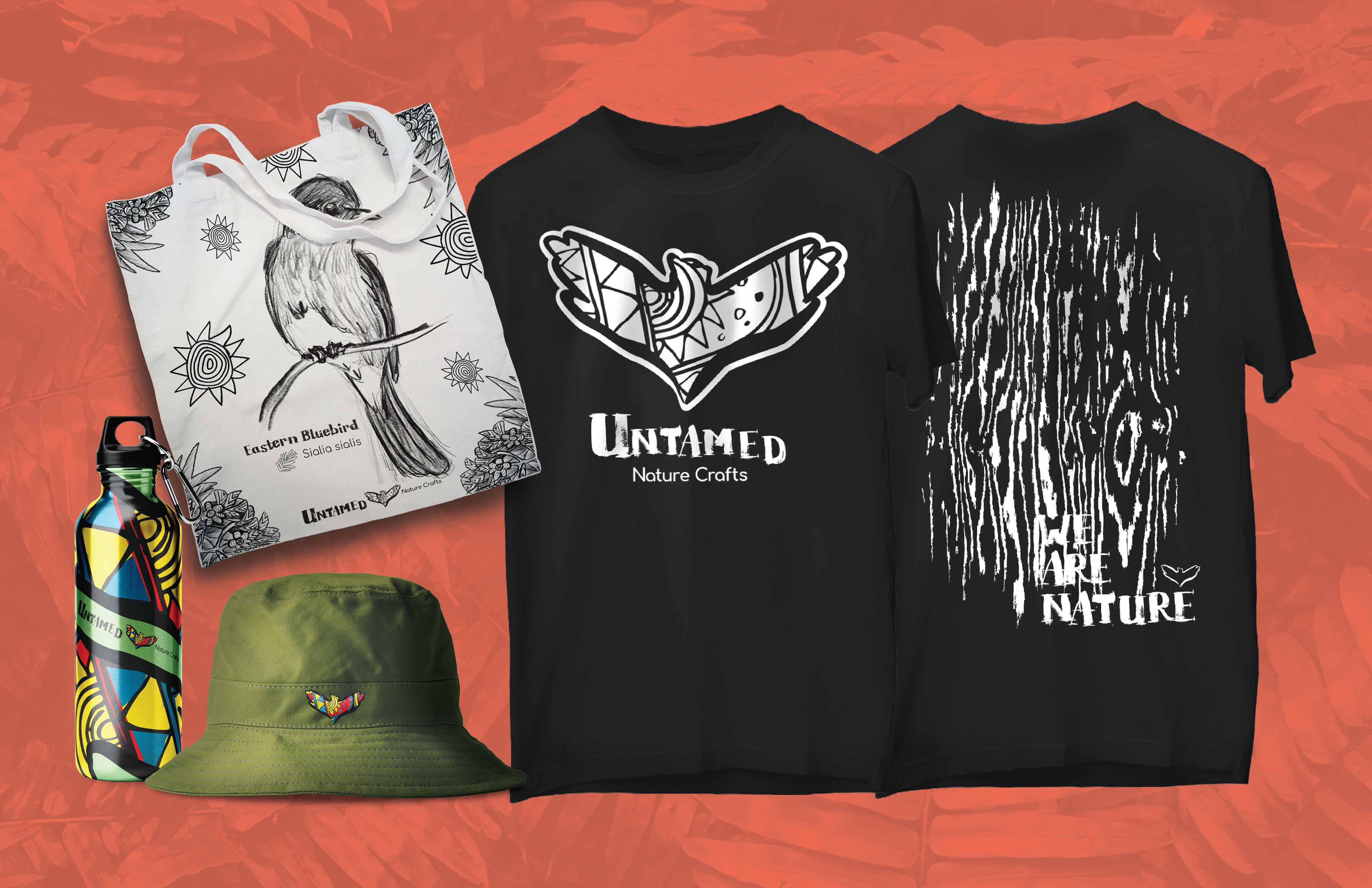 I developed a set of Untamed merchandise mockups to extend the brand identity into physical products while maintaining its focus on craft, nature, and process. The tote bag is made using hemp with algae-based ink, and the design keeps a hand made quality to reflect the brand’s emphasis on getting messy and working with natural materials. The t-shirt uses hemp fabric with water-based titanium dioxide white ink, featuring the primary logo on the front and a bark texture graphic on the back with “We Are Nature” subtly integrated to reinforce connection to the natural environment. The water bottle and hat use full-colour printing for durability and long-term use, supporting the idea of lasting, functional branded objects.