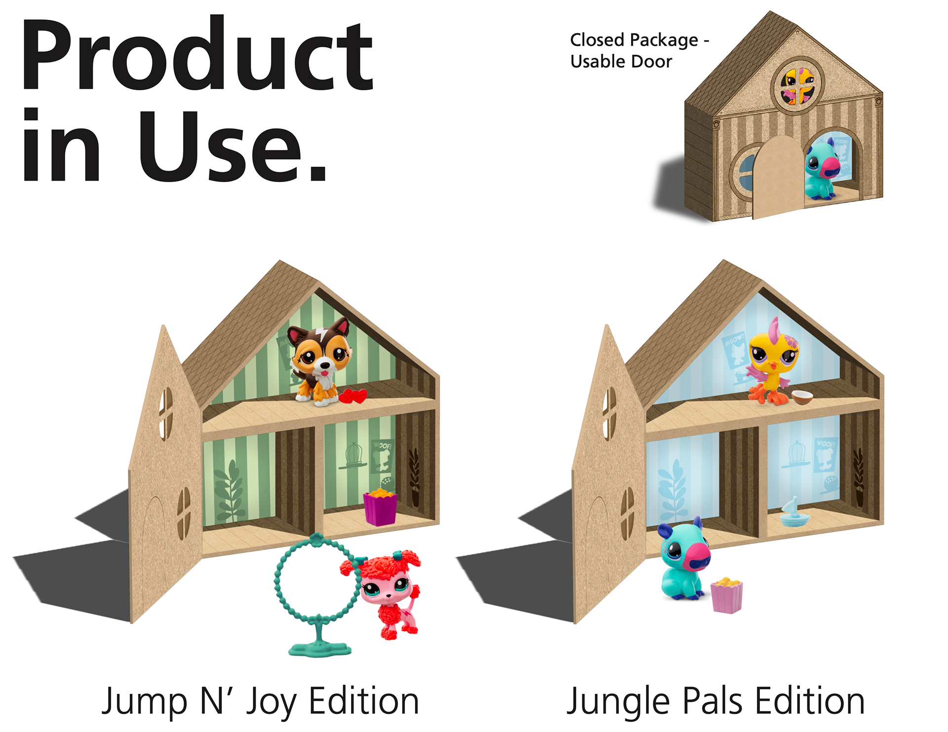 This project challenges the environmental impact of single-use packaging by reimagining an existing Canadian consumer product through the lens of sustainability, usability, and play. In response to industry trends, such as minimizing waste, promoting up-cycling, and designing for recyclability, I redesigned the Littlest Pet Shop Pet Pals packaging to reflect a more responsible and creative approach.